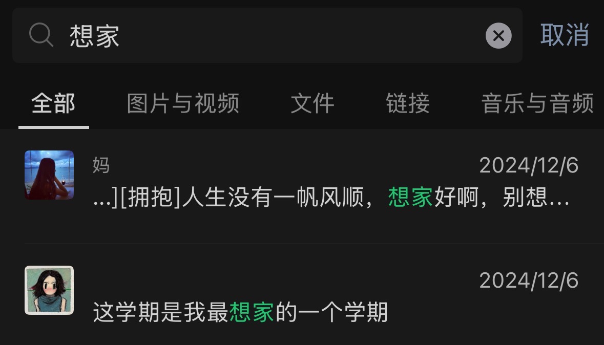 24 年 12 月 6 号,记得那天躺在床上有些寒颤,我第一次跟爸妈说想家了。没错,当你感到疲惫、无措,或者发现有任何自己处理不了的坏情绪时,可以试着和妈妈平静地聊聊天。